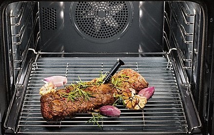 Pečenje do središčne temperature prinaša najboljše rezultate: z brezvrvičnim termometrom, ki je patentiran za podjetje Miele, lahko pečete meso, ribe in perutnino do stopinje natančno. In to izjemno udobno in brez potrebnega nadzora, saj vam prikaz preostalega časa ves čas kaže, kdaj bo jed pripravljena. Termometer brez kabla nudi posebno preprosto uporabo in je ves čas pri roki v vratih pečice.